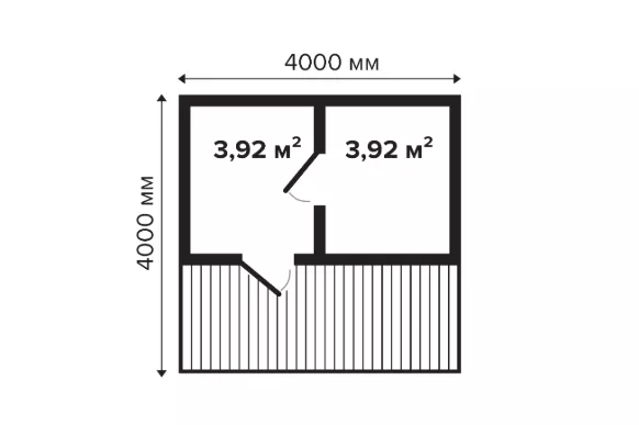 Одним из ярких примеров является компактная, но функциональная баня размером 4×4 м с удобной террасой, рассчитанная на комфортный отдых 2–4 человек. Эта планировка объединяет полноценное помещение для парной, комнату переодевания/отдыха и открытую зону на улице. Терраса идеально подходит для времяпрепровождения после парения — здесь можно разместить стол и кресла для размеренного отдыха и общения.